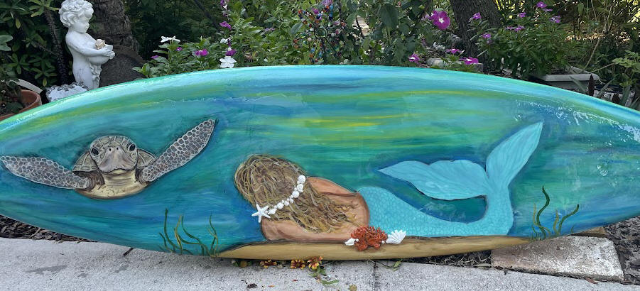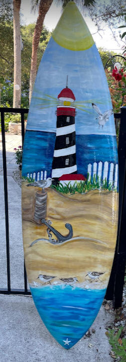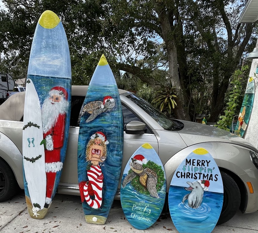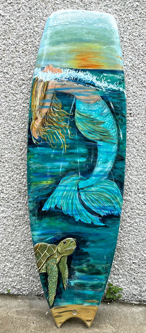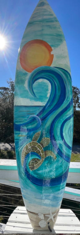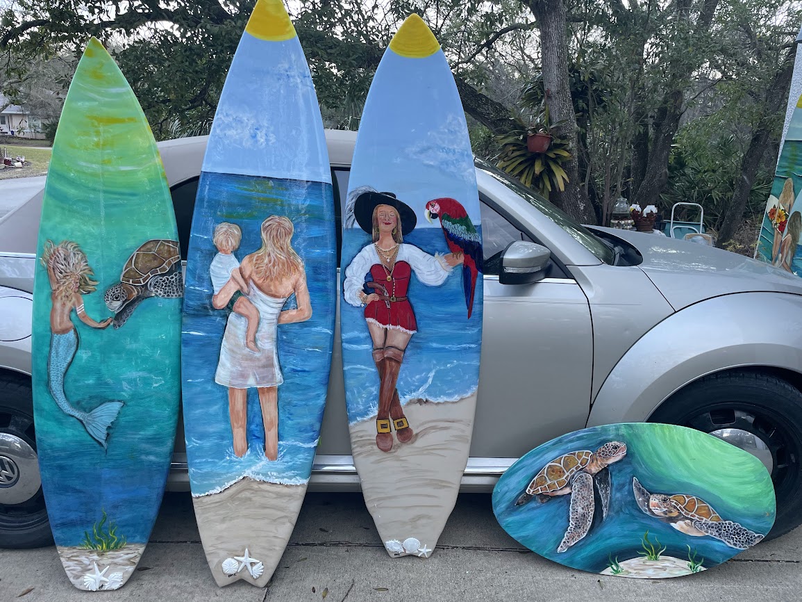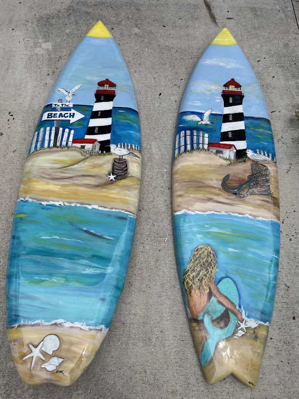 Surfboard/skimboard paintings. Bring me your surfboard or skimboard, or I may be able to