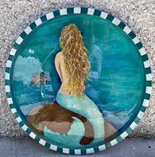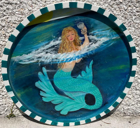 Round Tray. Can be used as a tray or hung on the wall. Tray sizes vary. Acrylics under resin.