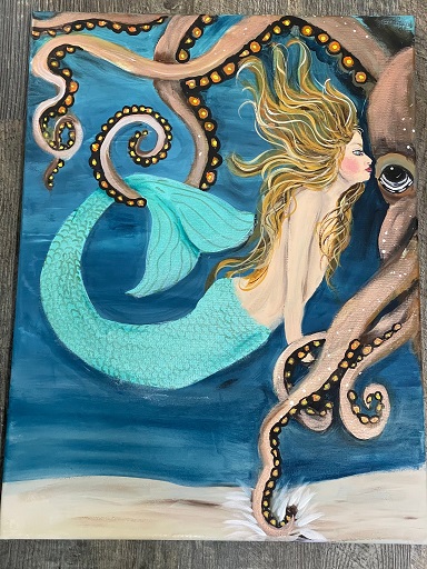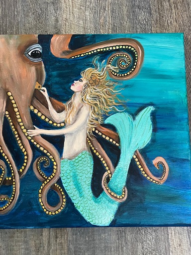 ![]() Mermaid & Octopus #2 Can be ordered painted on canvas, tote bags, or any item you may want painted. |